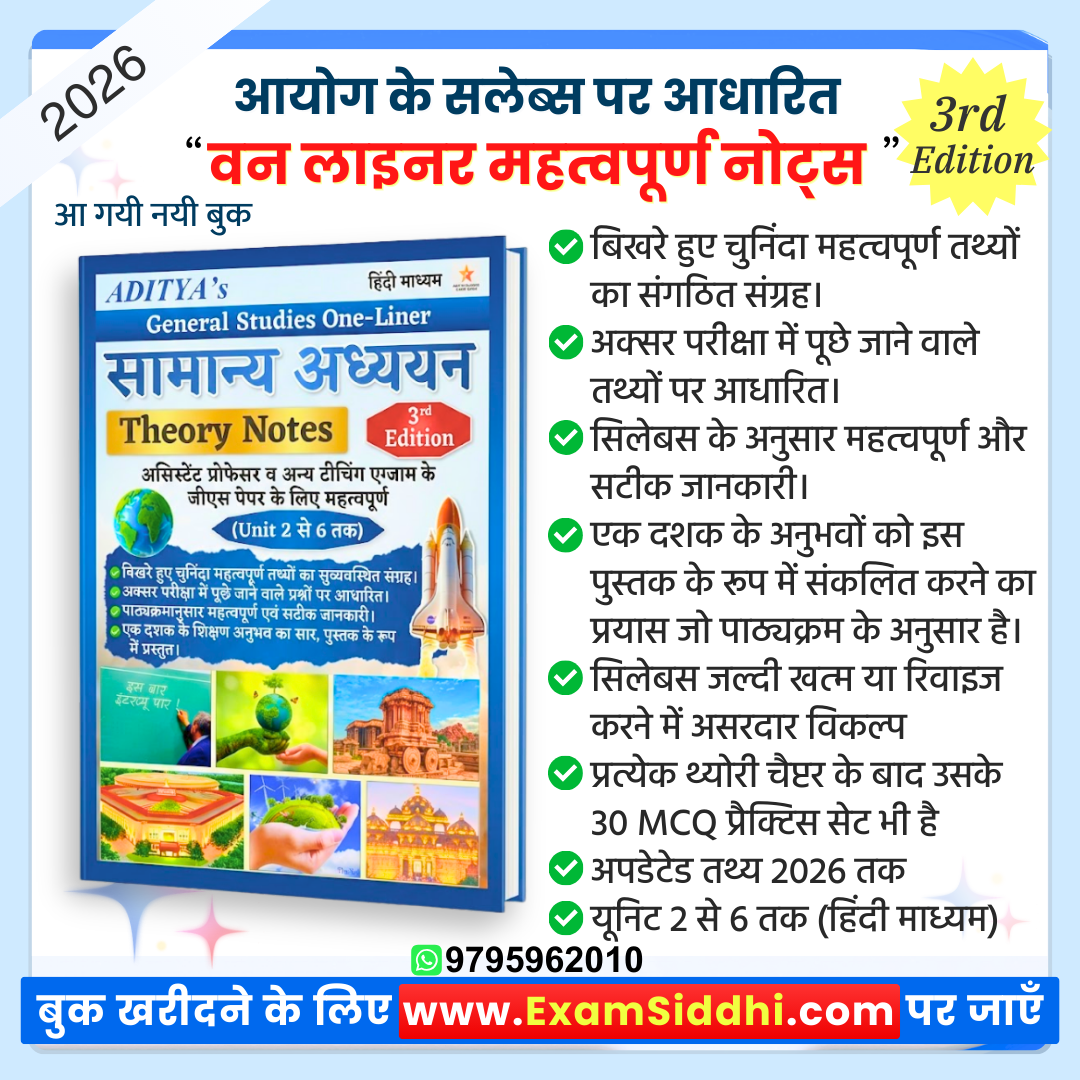 Aditya Sir (11+ वर्षों के GS विशेषज्ञता के साथ) द्वारा तैयार, यह किताब असिस्टेंट प्रोफेसर परीक्षा की तैयारी का आपका बेस्ट साथी है। आइए देखें इसमें क्या-क्या खास है: